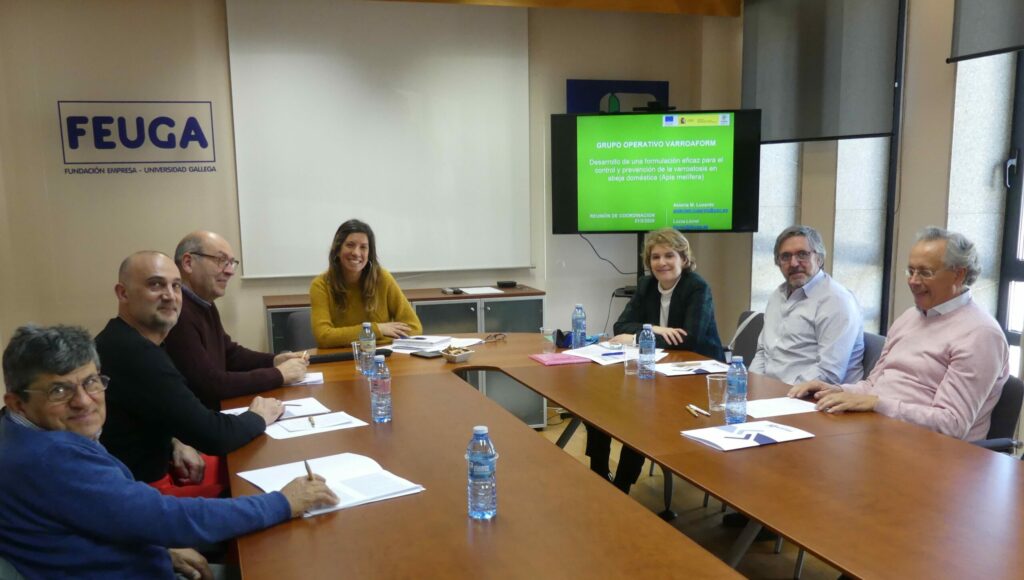 Hoy tuvo lugar en FEUGA la reunión de arranque de VARROAFORM, que busca el desarrollo y obtención de una formulación alternativa a los acaricidas convencionales a partir de formulaciones de liberación controlada en el tiempo a base de productos de origen natural con actividad anti-varroa, y que será testada en colmenares de Galicia, Castilla La Mancha, Castilla y León y Canarias.