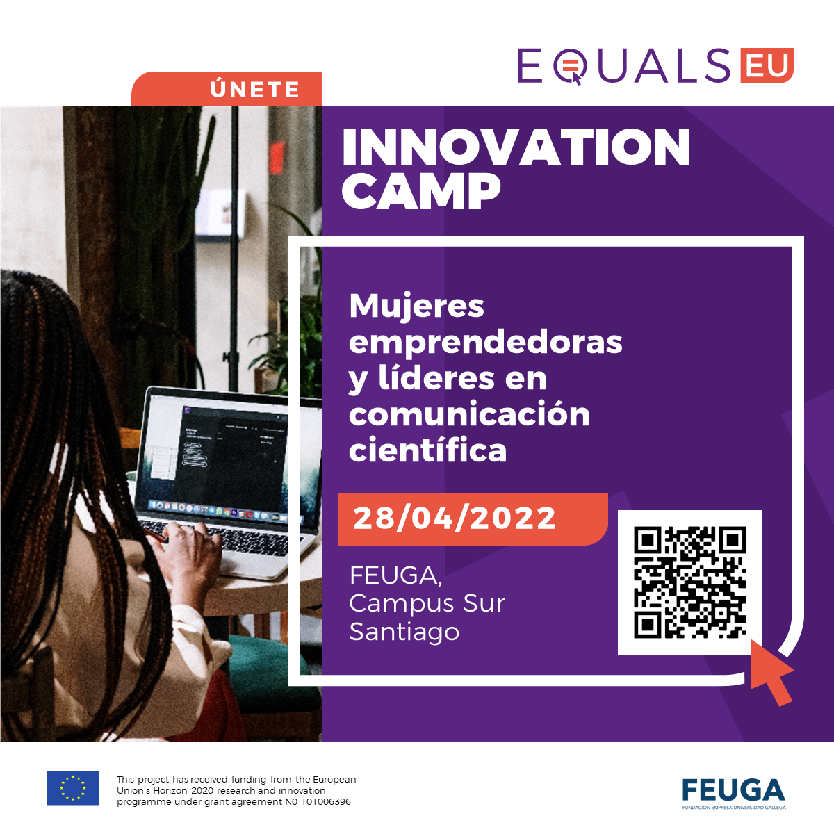 Como parte del Proyecto EQUALS-EU Regional Partnership for Gender Equality in the Digital Age,FEUGA lanza un Innovation Camp enfocado a fomentar el emprendimiento femenino en comunicación científica, que tendrá lugar el próximo 28 de abril en Santiago de Compostela. Con el foco puesto en la búsqueda del potencial emprendedor de mujeres, chicas, personas no binarias y transgénero y bajo el título “Mujeres emprendedoras y líderes en comunicación científica”, esta iniciativa forma parte de una serie de Hackathons e Innovation Camps en 24 países organizados desde el Proyecto EQUALS-EU.