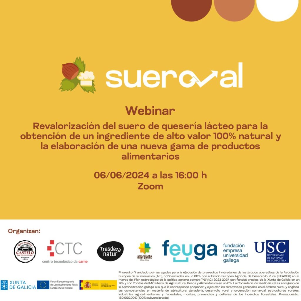 El Grupo Operativo gallego SUEROVAL, en el que participamos, organiza el jueves 6 de junio, a las 16:00h, un webinar online para presentar el proyecto de innovación. En la jornada, representantes de las entidades que integran dicho proyecto expondrán los trabajos que están realizando para lograr los objetivos y resultados esperados de SUEROVAL.