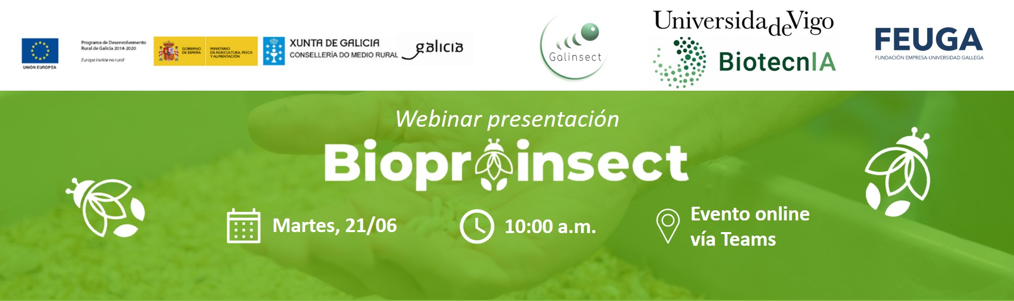 In the webinar, representatives of the participant companies (Galinsect, the Universidade the Vigo group BiotecnIA and FEUGA), will expose how this novel and innovative enzymatic process is being developed. Furthermore, the viability and potential of the initiative will be presented. A pioneer initiative that will set Galicia at the foremost of the agri-food innovation.
