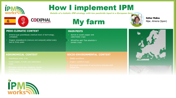 IPM Works, un proyecto financiado por los Fondos Europeos H2020. tiene como objetivo crear una red agrícola europea de promoción y demostración de estrategias de manejo integrado de plagas para reducir la dependencia de plaguicidas y su efecto ambiental y sobre seres humanos.