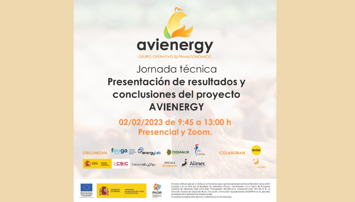 El próximo 2 de febrero se celebrará una jornada técnica presencial (en Allariz-Ourense) y online (vía Zoom), en la que se presentaran los resultados y conclusiones del proyecto AVIENERGY para facilitar la implantación de las soluciones en los sectores objetivo.