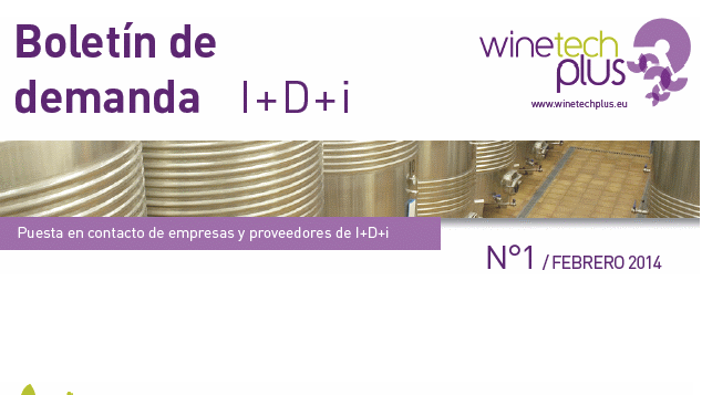 Boletín de Demandas de I+D e innovación formuladas por bodegas y empresas de la industria auxiliar del sector vitivinícola, elaborado en el marco del proyecto europeo WINETEch PLUS (www.winetech-sudoe.eu)