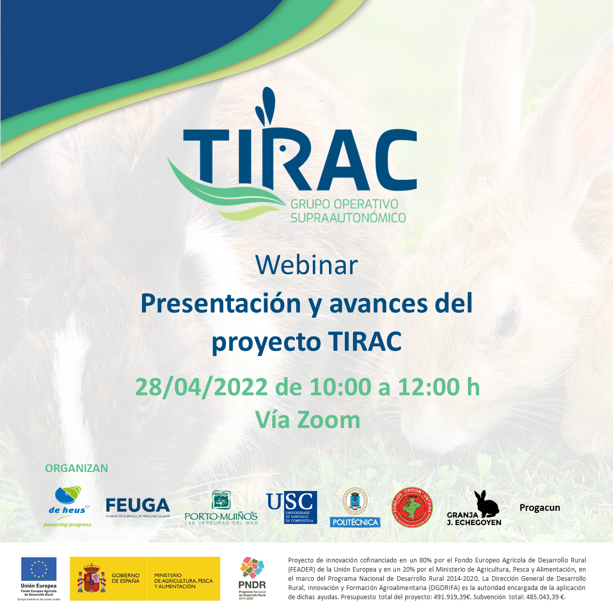 El objetivo de este webinar es presentar los objetivos y avances del proyecto TIRAC, así como los resultados esperados. Además, se expondrá el papel de las empresas dentro del proyecto y se tratará la relevancia e impacto que puede generar TIRAC en el sector cunícola.